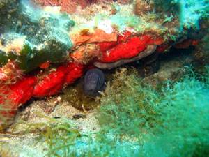 Durant cette plongée nous avons vu un nombre impressionnant de "bernard l’Hermite" qui étaient en pleine lune de miel !.. Une murène, des rougets en plein diner, une très belle daurade, des girelles toujours aussi nombreuses, bref une belle plongée par une eau à 16° et une visibilité potable.