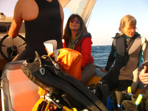 A bord notre Martine nationale a assuré la sécurité surface, tandis que toutes les palanquées s'en allaient pour la grotte de la "boulégeade" (Cette grotte a deux ouvertures, une coté Sud-Ouest de l'île de Riou dans la calanque de la Boulégeade vers 6 à 7 m de fond et l'autre débouche face au large plein Sud à une profondeur de 24 m en plein milieu d'un beau tombant).