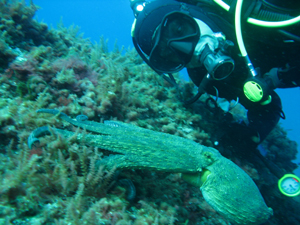 Un périple sous-marin de 54 minutes avec une profondeur atteinte de 21 mètres facilite les Rencontres avec la faune et la flore locales, sources d’agréables surprises : un beau poulpe indigné par la présence de deux hommes grenouilles dans la calanque, une petite langouste, plusieurs sortes de poissons et deux magnifiques spirographes.