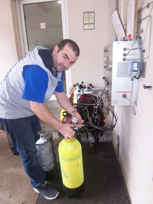 Au club, les techniciens en inspection visuelle (TIV) vérifient, sous la houlette de notre Lulu avec sa voix de ténor de l'opéra de Callelongue, que nos récipients sous pression sont aptes à être utilisés pour la plongée subaquatique.