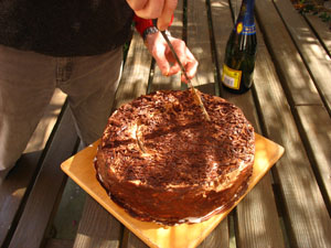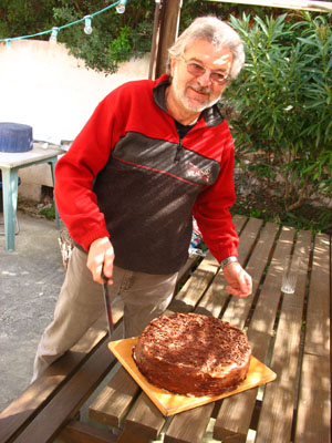 Après une plongée de 48 minutes, une profondeur maxi de 20 mètres et une eau à 14° nous sommes de retour à notre base, où nous attendait le gâteau préparé par notre chef cuistot pour son anniversaire: un délice.