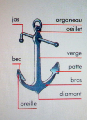 Revenons à notre plongée, nous avons distingué au loin un calamar, qui avançait en pleine eau, Remarquez que le "Labé"(Le Labé est le nom d'un vent de Sud Ouest qui souffle en fortes tempêtes sur les côtes de Marseille et de ses environs.) qui a soufflé la semaine précédente et une mer démontée avaientt dessablé l’ancre jusqu’à y pouvoir presque passer sous sa verge (D), voir photo ci-dessous.