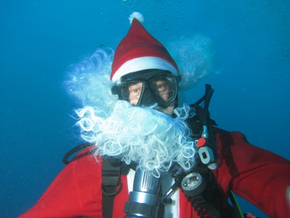 En ce samedi 18 décembre, comme l’année passée, MSLC plongée a organisé son arbre de Noël sous marin. Nous avions fait des émules, car nous n’étions pas seuls, mais l’autre club présent ne jouait pas dans la même division se contentant de quelques bonnets de saison sur la plongée. Le lieu du crime cette année était la fameuse ancre de Callelongue. Les points GPS avaient été entrés la semaine précédente afin de pouvoir amener tout le matériel directement. En effet, si bon nombre de plongeurs savent retrouver la fameuse ancre en partant du quai, nous n’avions pas les repères exacts en surface et nous voulions éviter de faire une recherche sous-marine avec le sapin. Descente ensuite avec le sapin plombé pour la circonstance et dépose des cadeaux. Jean-Claude nous a bien entendu gratifié d’un petit film qui a été diffusé aux infos régionales de France 3. |