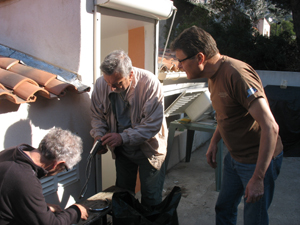 La bataille de l’Eau de Pâques est engagée avec son lot de problèmes divers et variés, les acteurs sont nombreux : Jean-Claude, Lucien, Pierre, Marc, Frédéric. Les premiers combats sont un succès, le robinet est remplacé. Mais l’ennemi est tenace : les raccords flexibles étant trop longs, ils se courbent en formant une pliure néfaste à un bon débit.